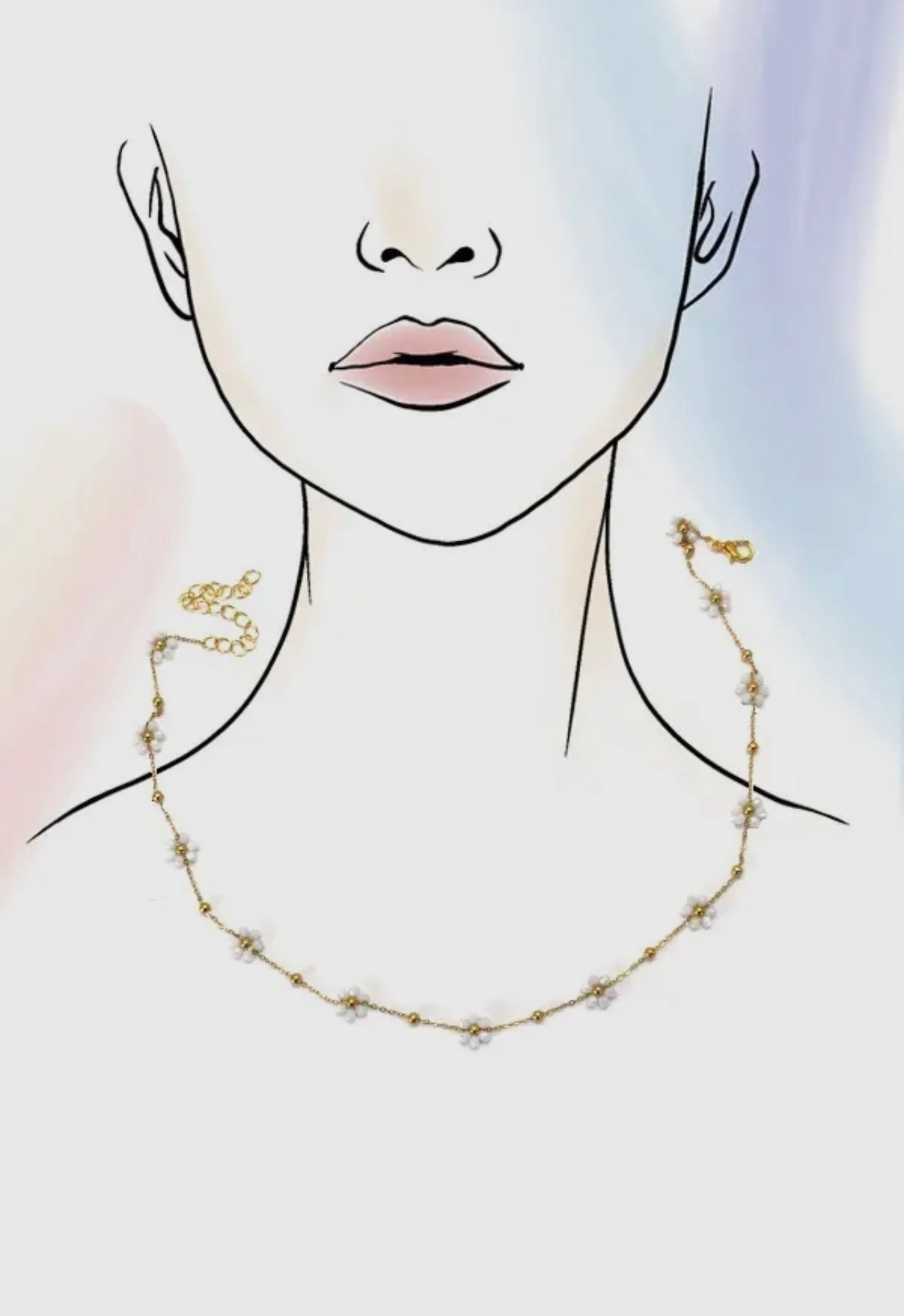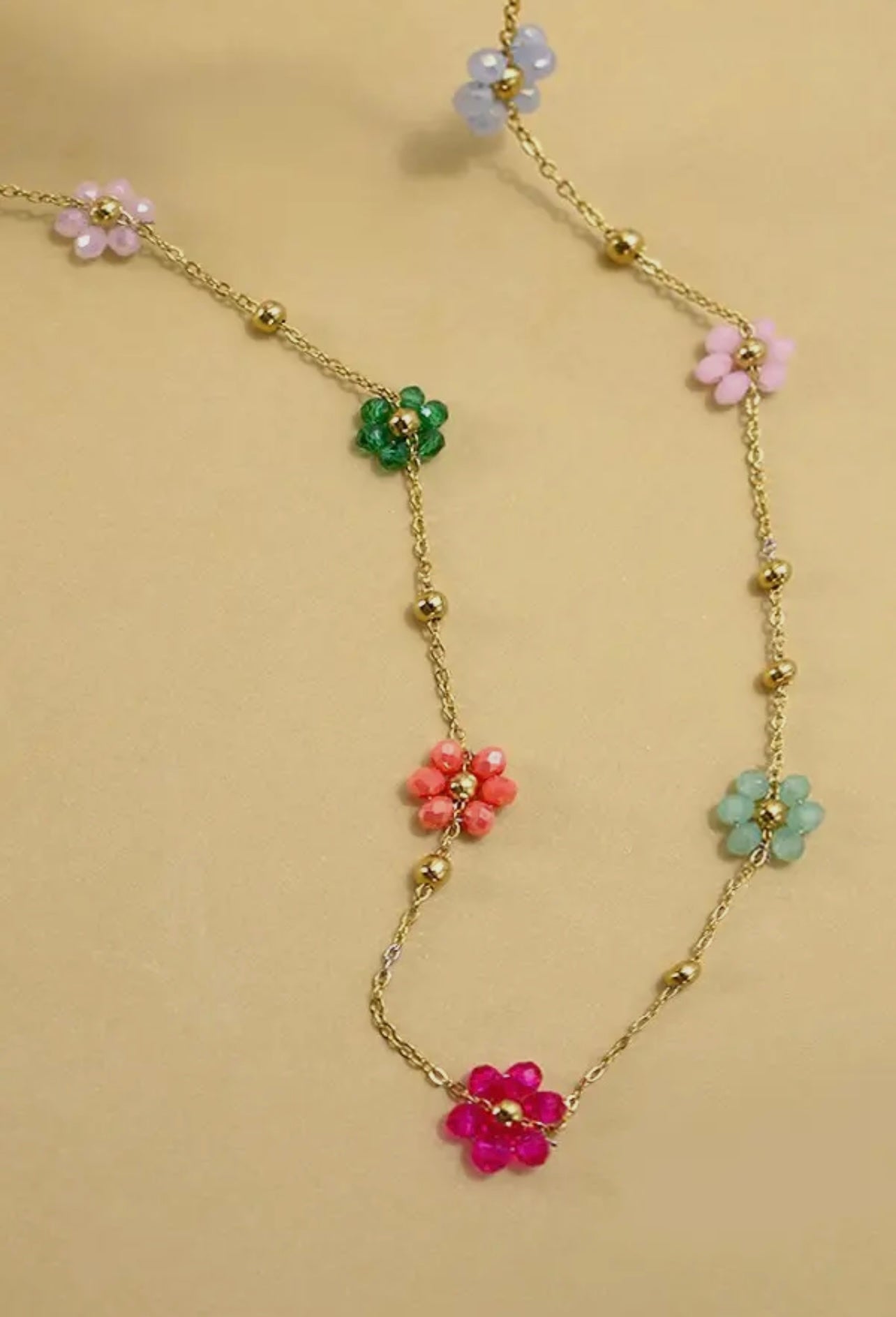 Multi Beaded Flower Charm Necklace. Gold Plated. Lobster Claw with 3" Ball Chain Extension. Lead & Nickel Compliant. Double E-Coating.